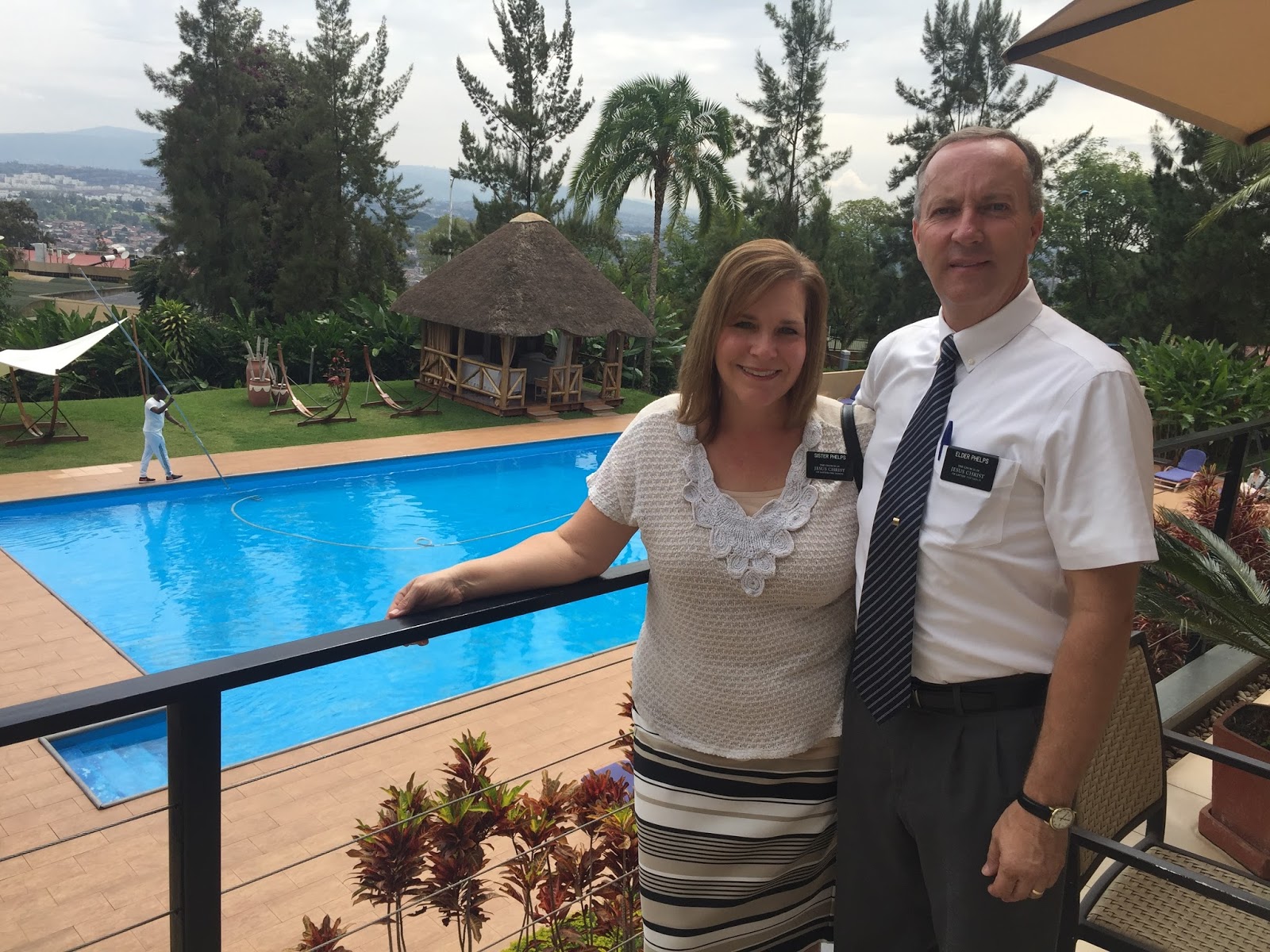 "We had a wonderful experience. This picture shows us standing on the hill where Elder Holland dedicated the country of Rwanda for the spreading of the gospel (missionary work). Here, on August 27th, 2009 Elder Holland came with other leaders and a few Rwandans who were already members and gave a very beautiful dedicatory prayer. It was recorded, and Elder Gillett (the senior missionary living here) read it to us on the hilltop. Twice in the prayer a blessing was pronounced on the people of Rwanda, that 'their memories would be purged' of the terrible events that occurred here. The effects of that blessing are seen here. The people use no class distinction any more. They are not Tutsi or Hutu, they consider themselves 'Rwandans'. As you can imagine there are still many difficulties, but they are trying their best to forgive each other and live together in peace. Missionaries began teaching here in 2013."